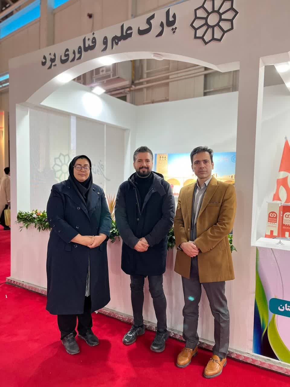 همچنین، جناب آقای مهندس میراسماعیلی (مدیرعامل شرکت حلال سلامت افق برتر) به عنوان نماینده شرکتهای مستقر در مرکز رشد واحدهای فناور دانشگاه اردکان در غرفه پارک علم و فناوری استان یزد حضور داشتند و به معرفی توانمندیها و دستاوردهای فناورانه شرکتهای فناور پرداختند.