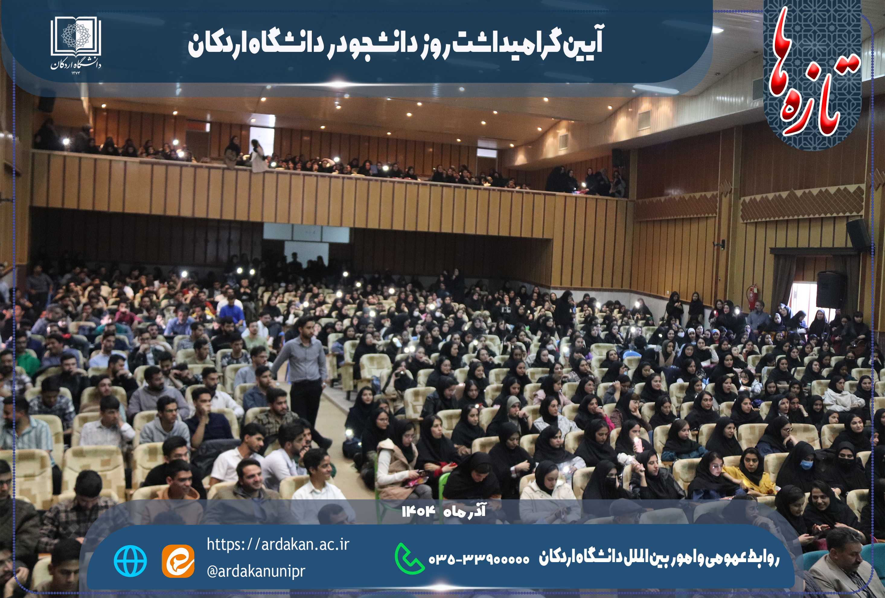 مجموعه برنامه‌های روز دانشجو در دانشگاه اردکان، با محوریت جشن  روز دانشجو و اجرای برنامه‌های جانبی فرهنگی، محیط‌زیستی و گفتگو محور، روزی سرشار از نشاط، مشارکت و همدلی را برای جامعه دانشگاهی رقم زد.