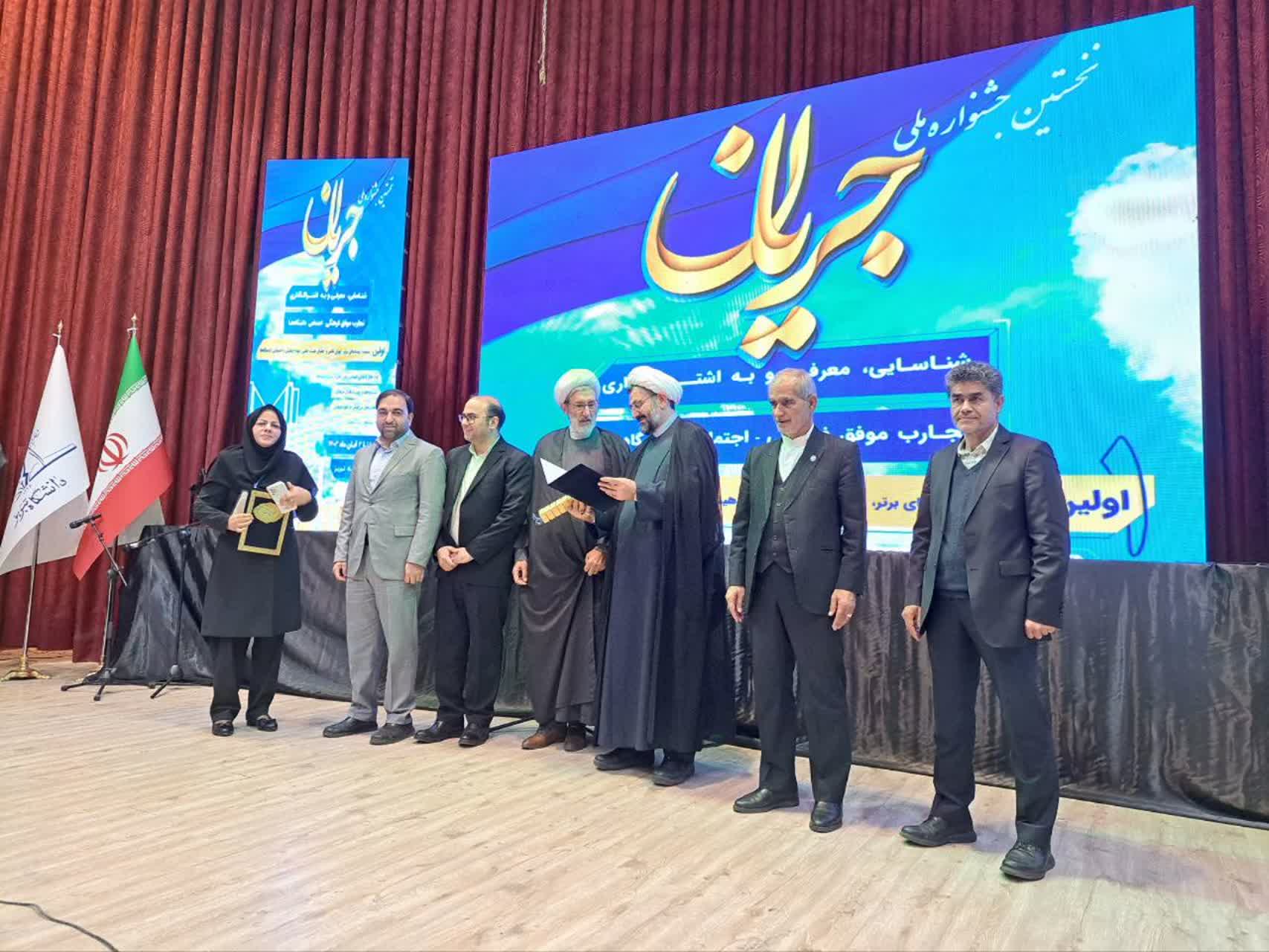 در اولین جشنواره جریان اثر دکتر احسان کردی اردکانی عضو هیات علمی دانشکده علوم انسانی و اجتماعی و همچنین اثر دکتر مریم مروتی عضو هیأت علمی دانشکده کشاورزی و منابع طبيعي بنا به انتخاب کمیته داوران در بین عناوین شایسته تقدیر قرار گرفت و لوح تقدیر دریافت نمودند.