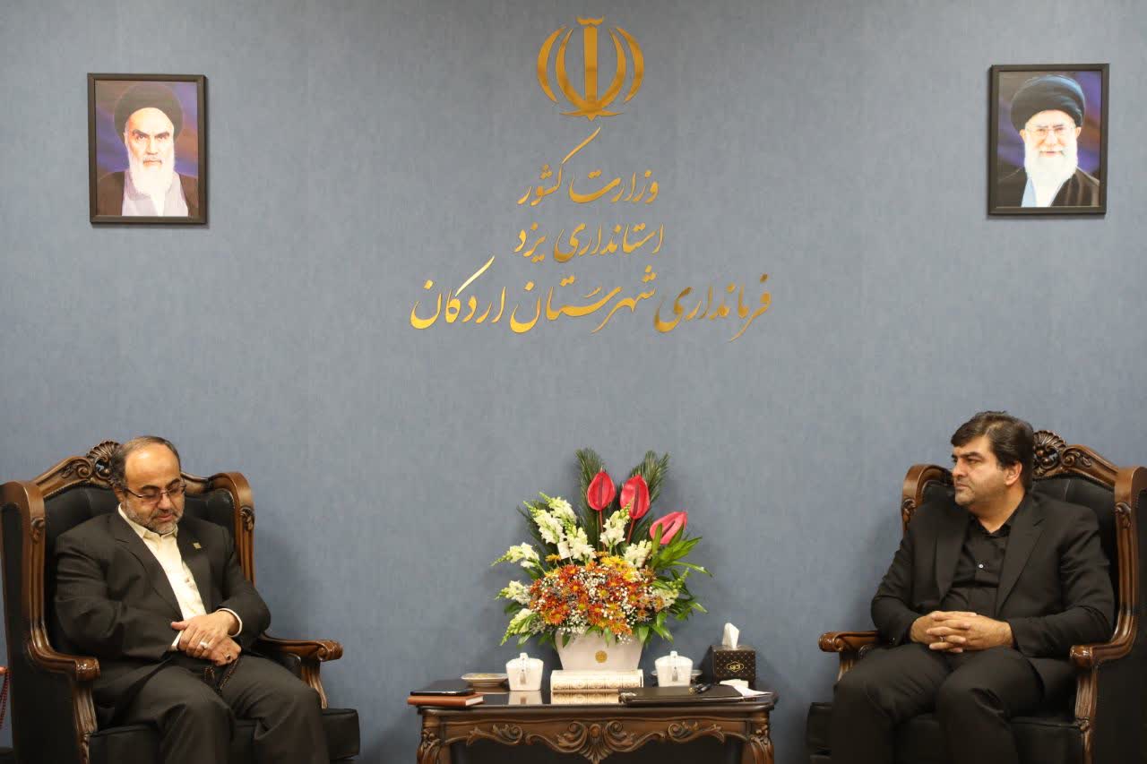 در این دیدار ابتدا دکتر حسین غفوری چرخابی ضمن تبریک به آقای مهندس شفیع زاده به بیان تاریخچه آموزش عالی و دانشگاه اردکان پرداخت و ضرورت آموزش عالی جامع در شهرستان را بیان نمود، سپس دکتراحمد فتاحی اردکانی رئيس دانشگاه ضمن عرض تبریک به جناب آقای مهندس شفیع زاده برای پذیرش مسئولیت خدمتگزاری به مردم شریف اردکان در کسوت "فرمانداری ویژه " به بیان  اهم توفیقات به دست آمده در سالهای گذشته در حوزه‌های مختلف آموزشی- پژوهشی، دانشجویی و عمرانی علیرغم تنگناهای مالی و عدم کفایت اعتبارات دولتی برای احداث یا تکمیل طرح های مورد نیاز دانشگاه پرداخت و در ادامه به پاره ای از نارسایی ها و مطالبات دانشگاه در حوزه‌های دانشجویی و عمرانی اشاره و خاطر نشان کرد که حل مشکلات یاد شده سبب اعتلای دانشگاه و رسیدن آن به جایگاه مناسب و شایسته شهر علم و ادب و ایمان  "اردکان" خواهد شد.