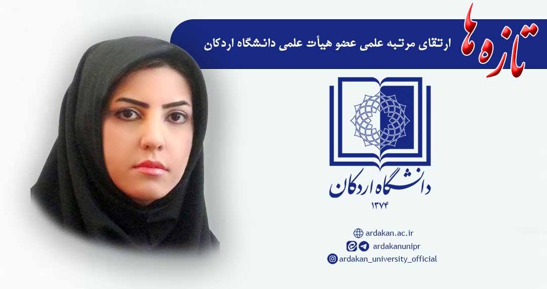 ارتقای مرتبه عضو هیات علمی دانشگاه اردکان در دهمین جلسه از دوره نهم هیأت ممیزه دانشگاه یزد که روز چهارشنبه 26 مهر ماه 1402 با حضور ریاست دانشگاه اردکان برگزار شد، «خانم دکتر اعظم جعفری» به مرتبه...