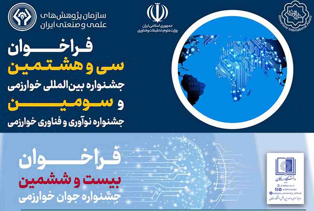 آغاز ثبت نام در جشنواره های خوارزمی جشنواره جوان خوارزمي براي رقابت دانشجويان، دانش پژوهان و نوآوران و فناوران با شرايط سني كمتر از سي و پنج سال، جشنواره بين المللي خوارزمي براي رقابت صاحبان صنايع...